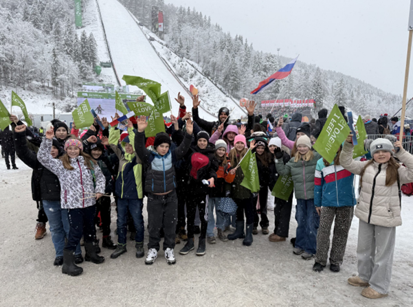 V četrtek, 26. marca 2026, je skupina dijakov naše šole skupno s prof. Hribar bila na ogledu smučarskih poletov v Planici na povabilo Olimpijskega Komiteja Slovenija (OKS) in Slovenske Športne Zveze (SŠZ) Celovec. Kljub zimskim razmeram jih je v Planici pričakala prava pravljična kulisa z nad 10.000 mladih.